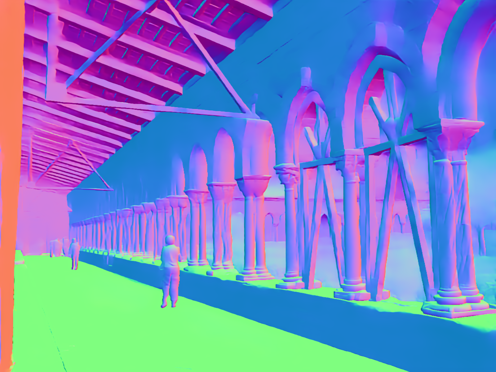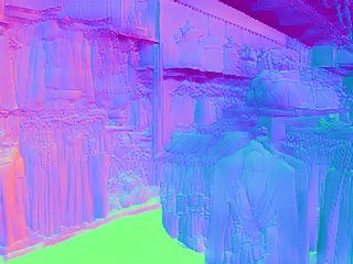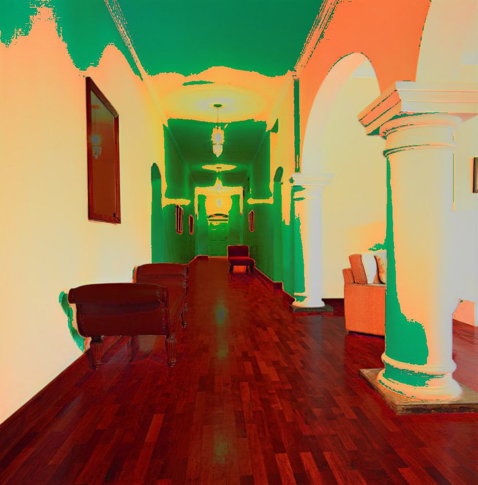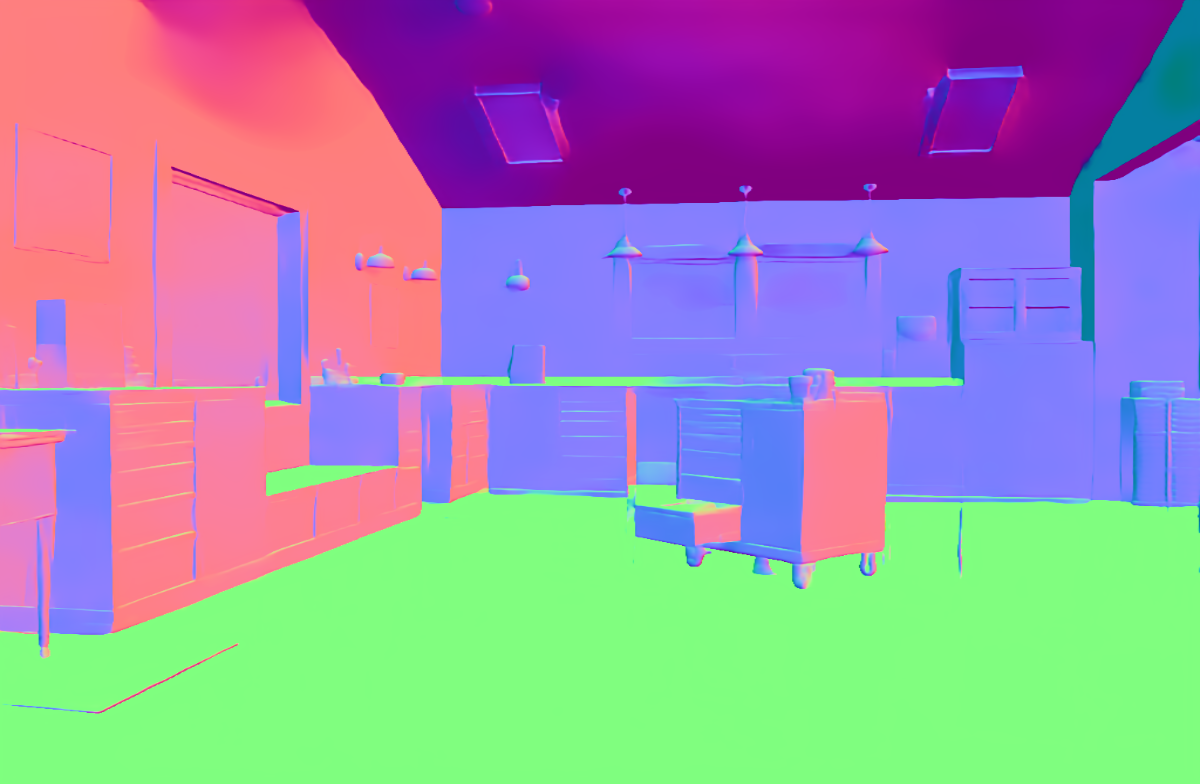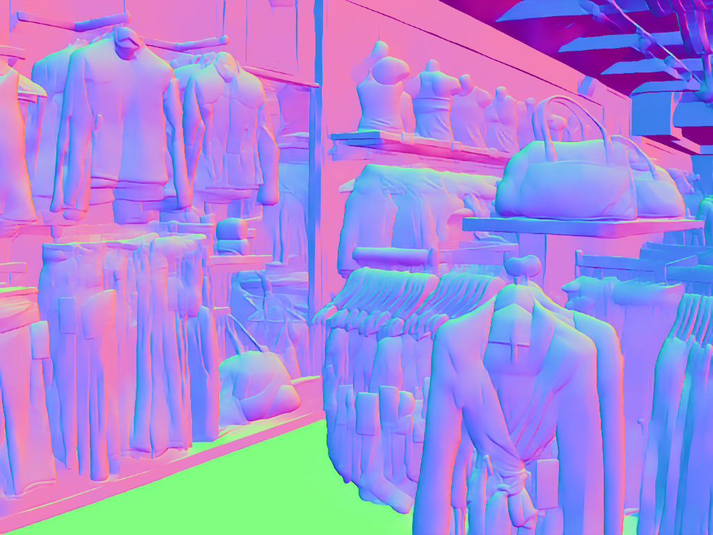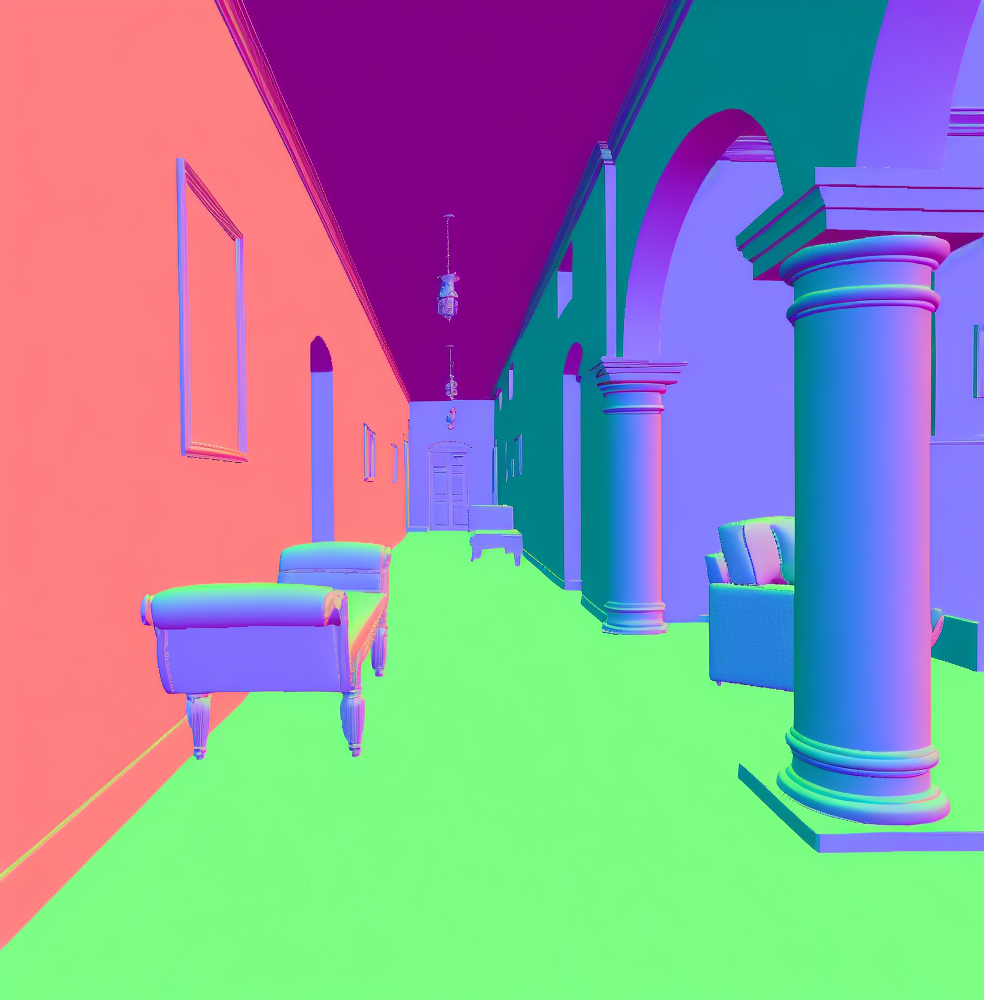 | Input image | Normal (Zhu et al. 2022b) | Normal (PVT-normal) | Normal (Ours RGB→X) seed 0 | Normal (Ours RGB→X) seed 1 | Normal (Ours RGB→X) seed 2 | Normal (Ours RGB→X) seed 3 | Normal (Ours RGB→X) seed 4 |