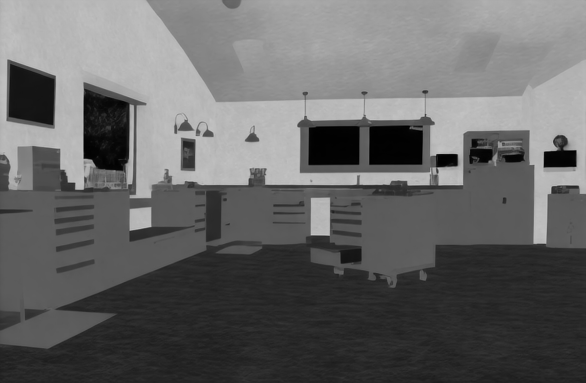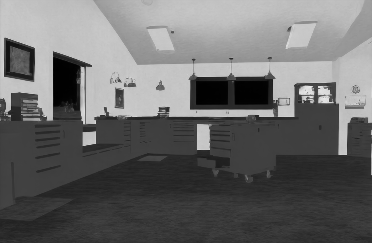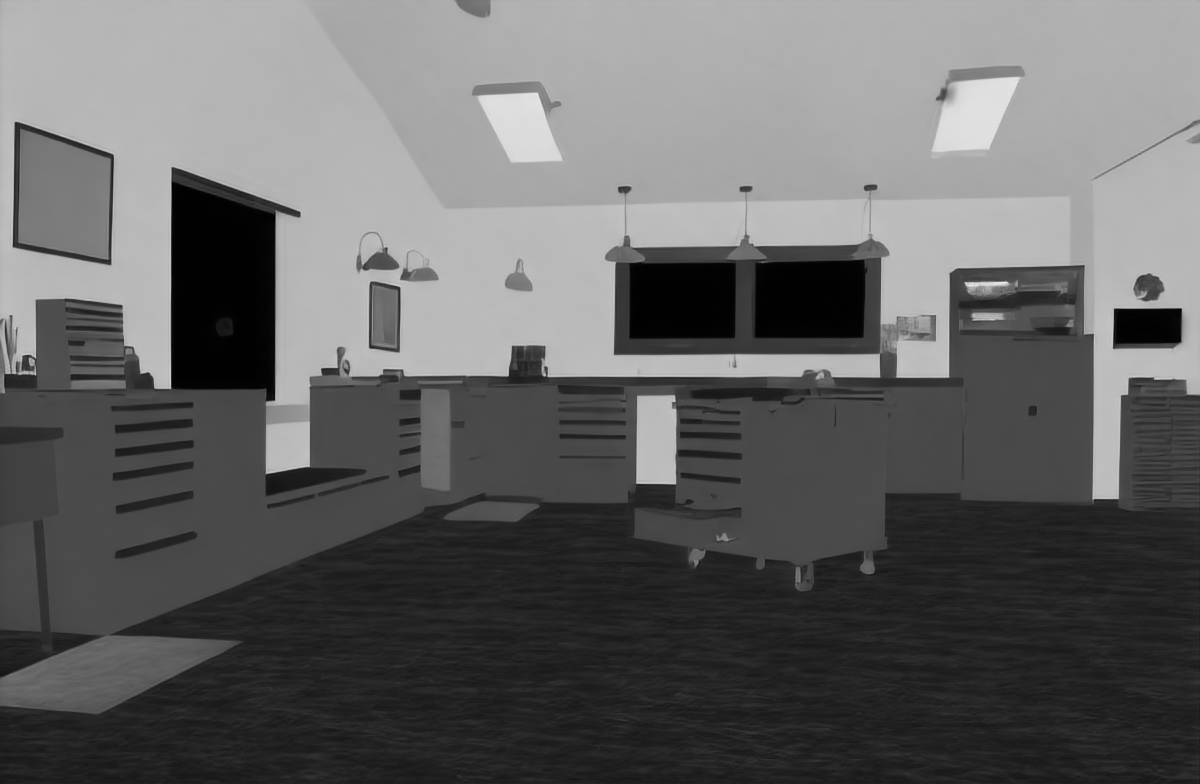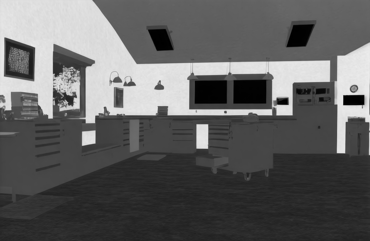 | Input image | Roughness (Zhu et al. 2022b) | Roughness (Ours RGB→X) seed 0 | Roughness (Ours RGB→X) seed 1 | Roughness (Ours RGB→X) seed 2 | Roughness (Ours RGB→X) seed 3 | Roughness (Ours RGB→X) seed 4 |